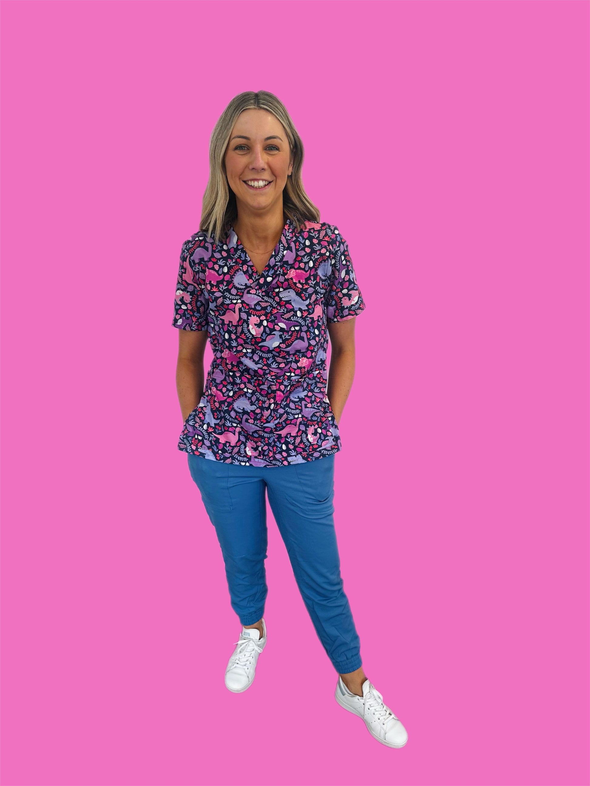 Unleash your inner roar with the bold and lively Dino Vibes scrub top! Packed with prehistoric charm and colorful dino prints, this top brings a fresh burst of fun to your workday jungle. Whether you’re stomping through rounds or cruising the ward, it’s designed for comfort, movement, and a whole lot of attitude.