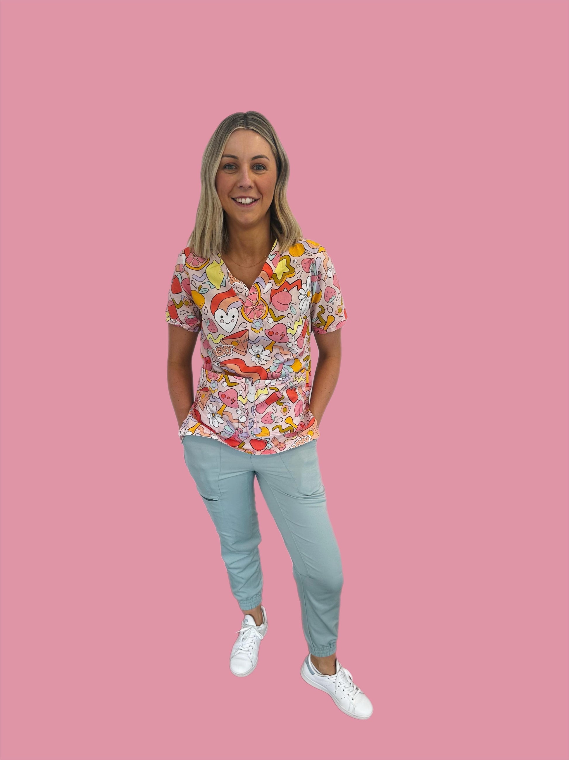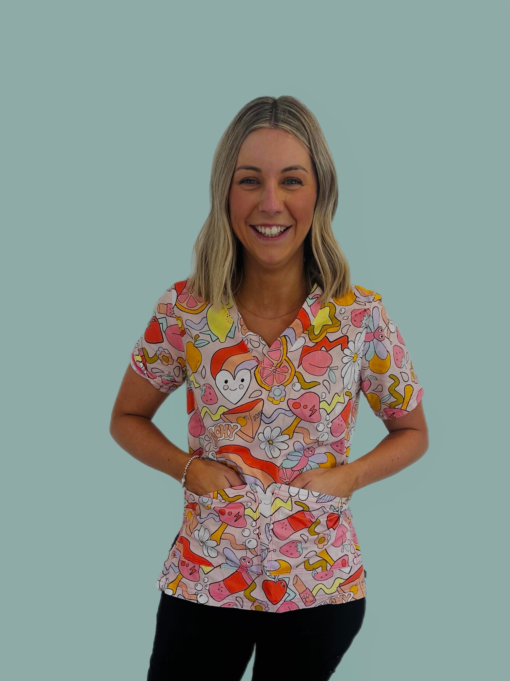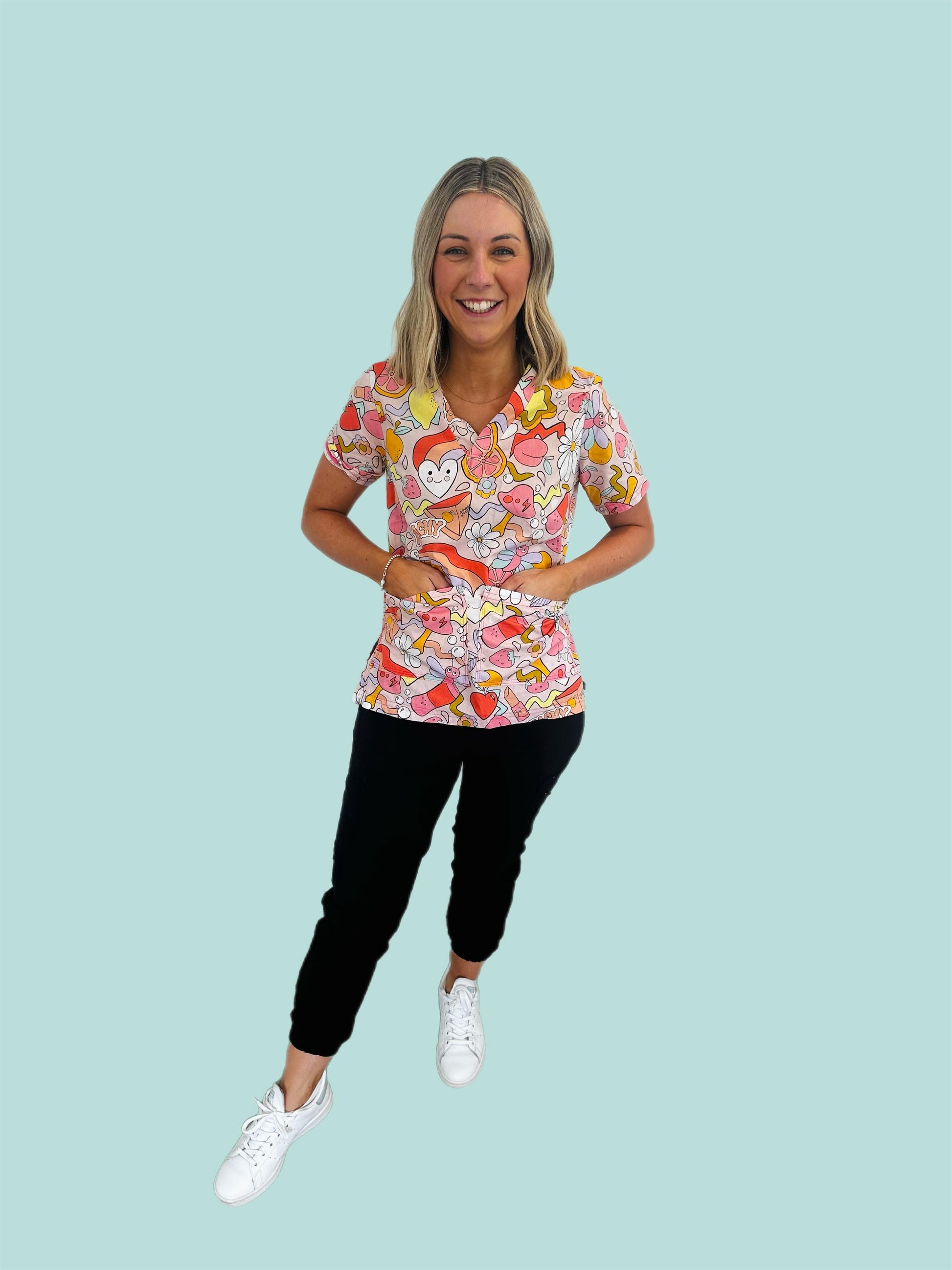 Soft, serene, and effortlessly fresh Feeling Peachy is your pastel daydream come to life. With gentle peach hues and a subtle, soothing design, this scrub top brings calm energy to even the busiest shifts. Lightweight, breathable, and easy to move in, it’s your perfect blend of comfort and charm.